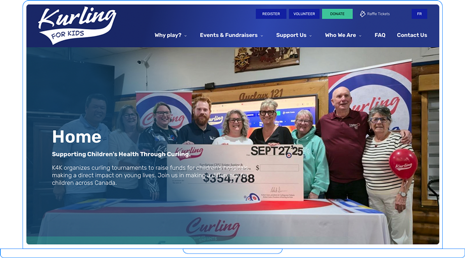 The platform needed to handle everything from event registration to peer-to-peer fundraising to raffle ticket purchases, while staying true to K4K’s community-driven spirit. We focused on creating seamless experiences that help supporters connect with the cause, take action – be it signing up for a tournament, making a donation, or rallying their network to fundraise – and celebrate progress with dynamic, real-time thermometers. As a Canadian organization based out of Montreal, the entire experience is also entirely bilingual in French and English.